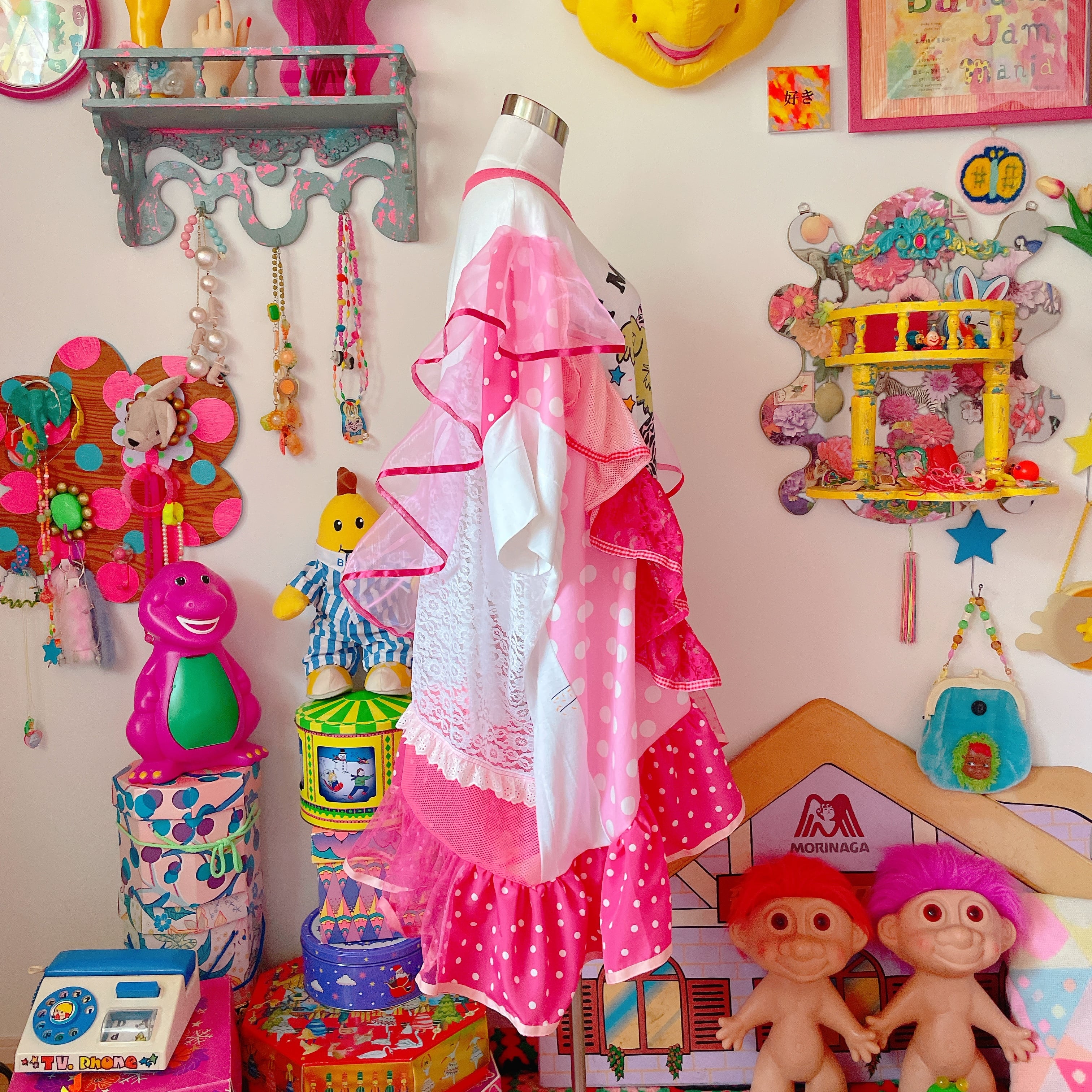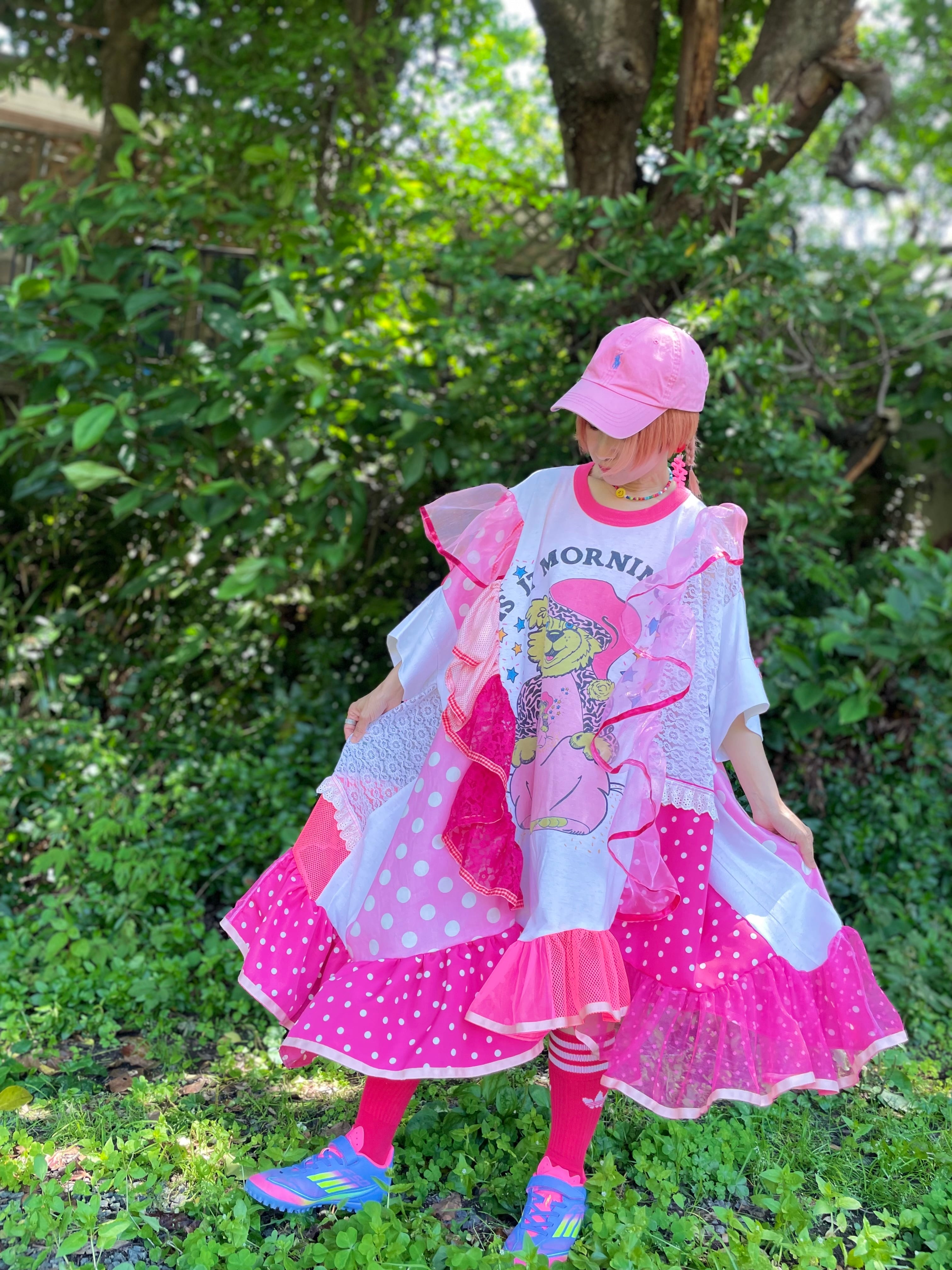古着のTシャツワンピースをリメイクしたワンピースです♡