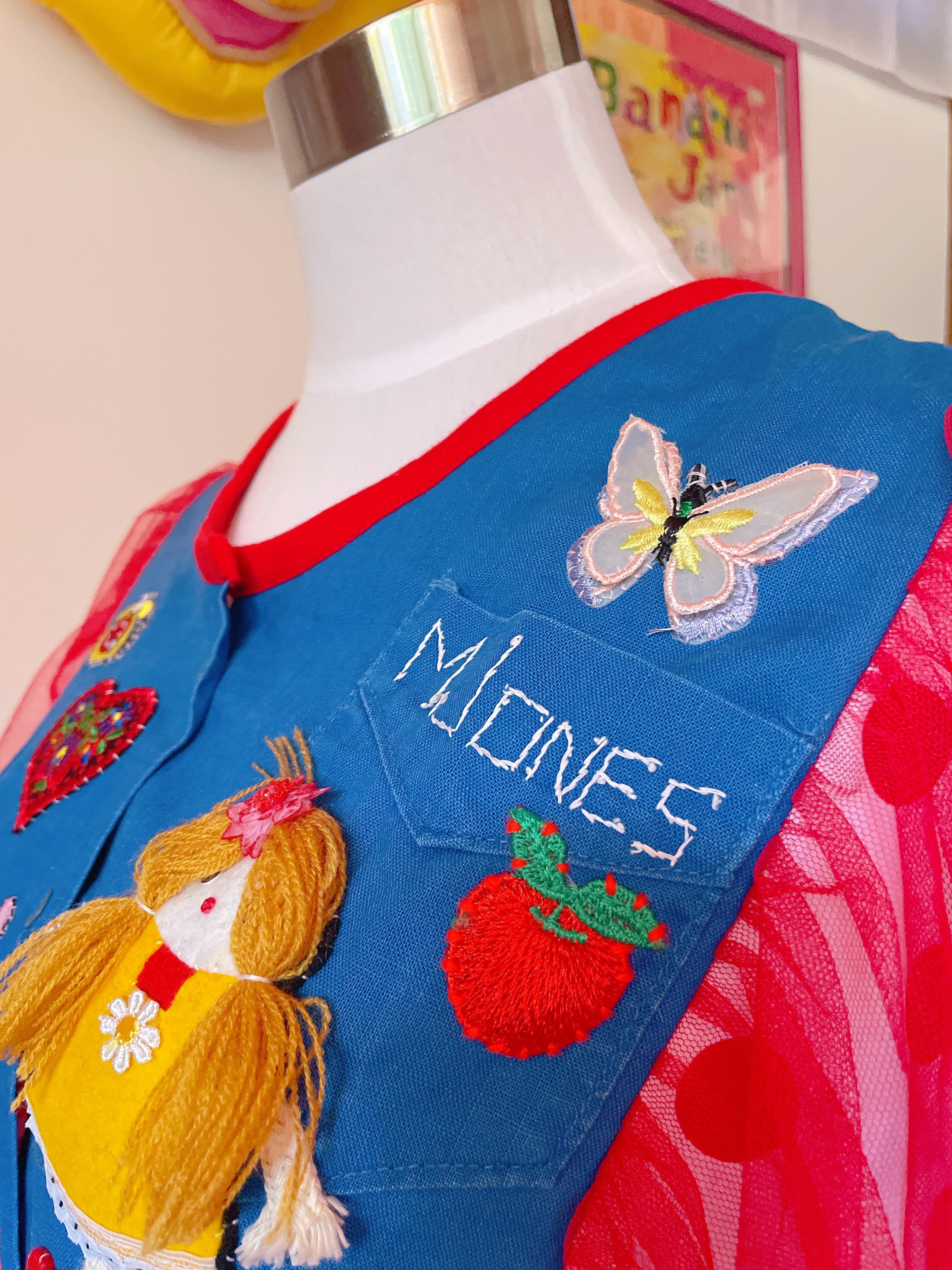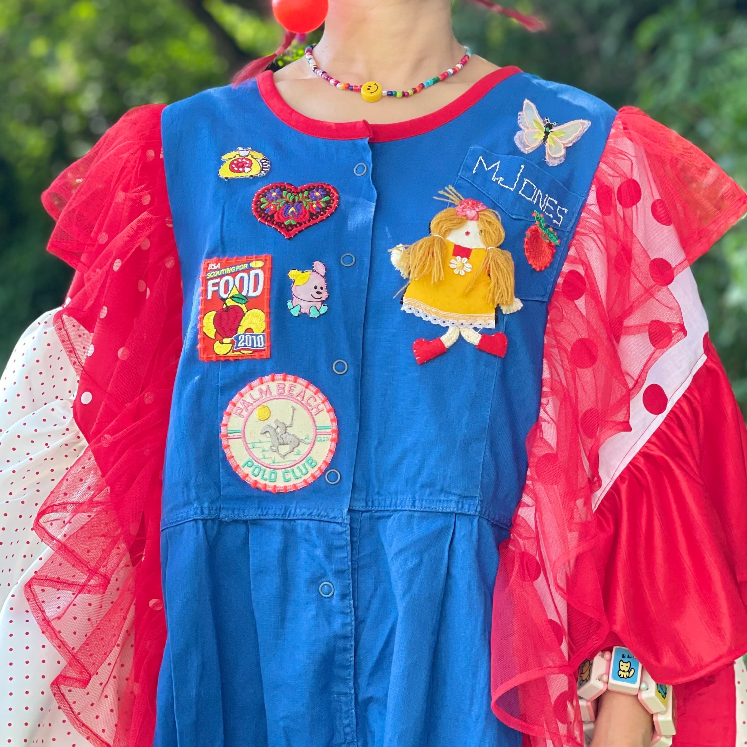 胸元に散りばめたワッペンはビンテージ、輸入ものなど多方面から集めたこだわりのものです。